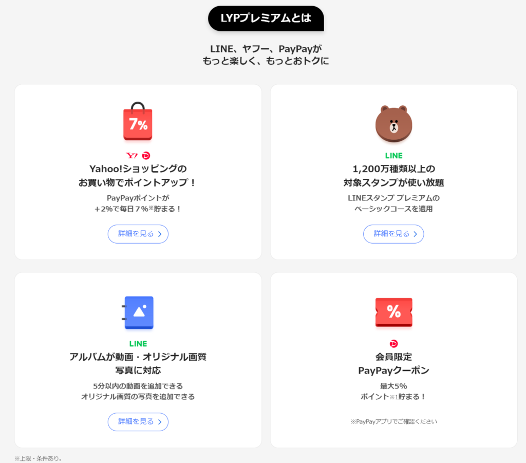 以前は「Yahoo!プレミアム」として提供されていましたが、LYPプレミアムに刷新されました。なおLYPは、LINE、Yahoo!、およびPayPayの頭文字を組み合わせた略称です。