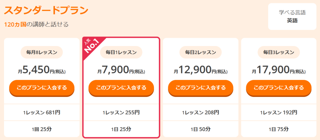 DMM英会話では、8つの料金プランが用意されています。以下は、いくつかのプランの詳細です: