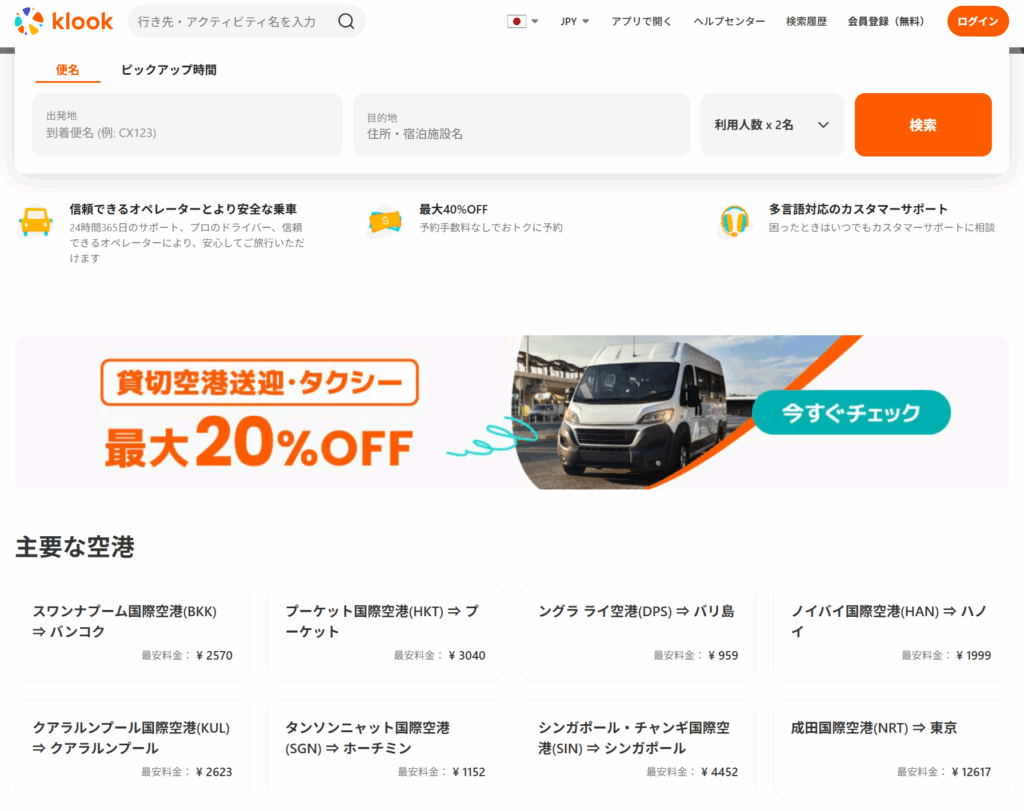 Klookの「空港送迎サービス」を使えば、到着ゲートでドライバーがネームボードを持って出迎えてくれ、そのままホテルへ直行。スーツケースも余裕で積める車種が多く、深夜便や子連れ旅行でも安心です。